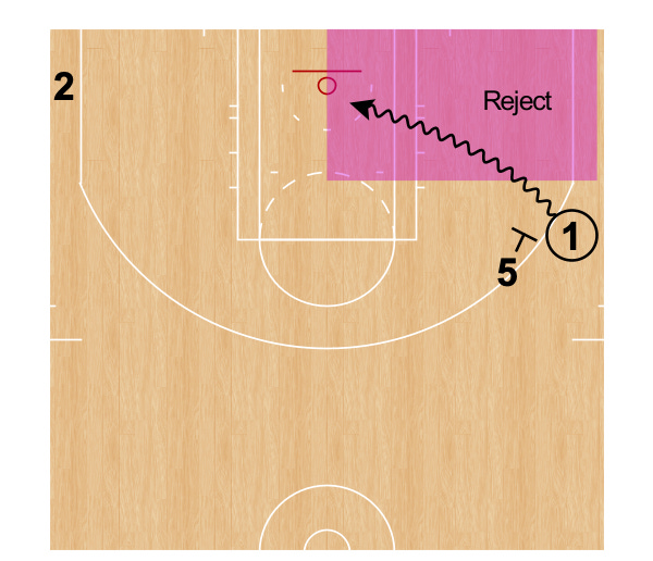 Having an empty corner also strengthens the “reject” option where the ball handler rejects the screen and drives baseline (Fig. 4).